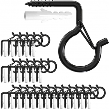 24 Pack 2.2 inches Ceiling Hooks with Safety Buckle, Screw Hooks for Hanging Plants & String Lights, Q-Hanger Hooks Screw-in Wal